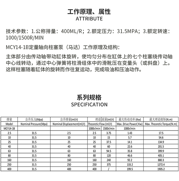 / MCY14-1B定量轴向柱塞泵